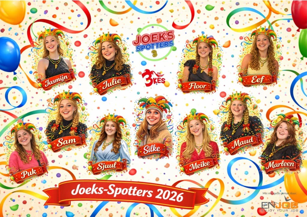 De Joeks-Spotters 2026 zien: Sam Horvers, ⁠⁠Eef van Zeijst, Silke de Brouwer, Maud Dohmen, Jasmijn Gielen, Marleen Munten, ⁠⁠Meike Kersten, Puk Willemsen, Sjuul Heijmans, Floor Niessen & Julie Keunen. Dit is al weer de 4e lichting Joeks-Spotters.